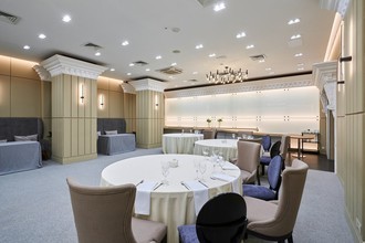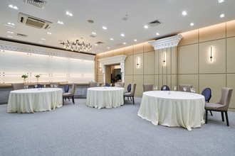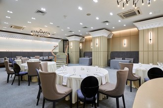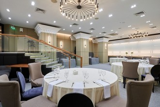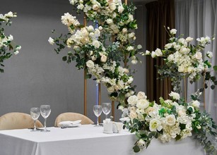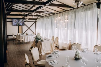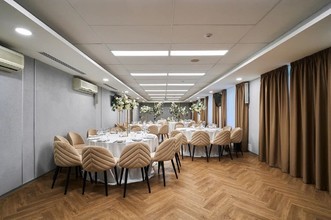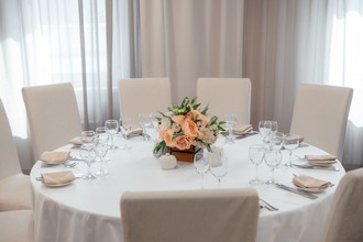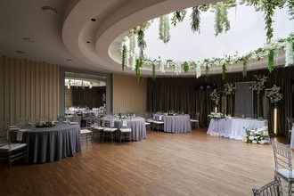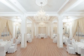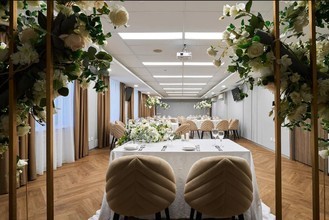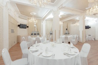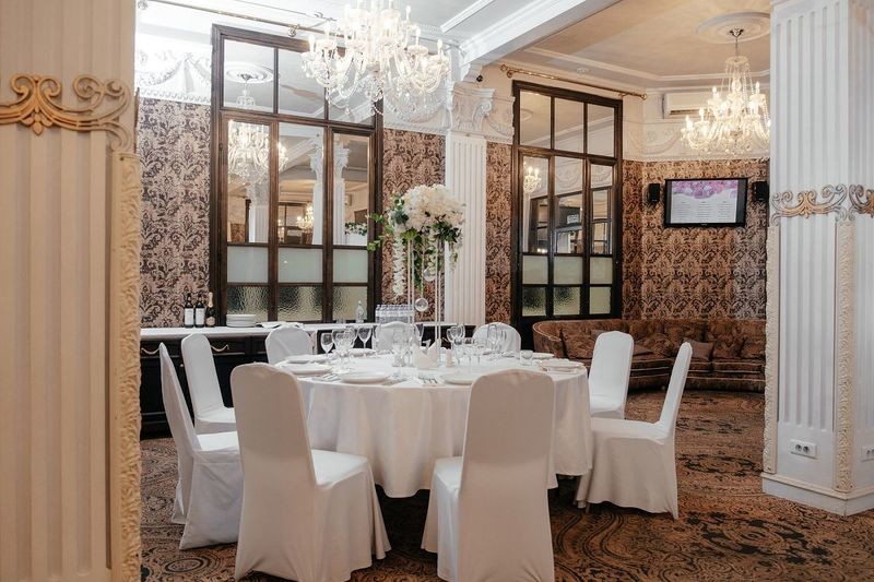 Стильный, вместительный и уютный банкетный зал с минималистичным изысканным интерьером. Подходит для проведения любых торжеств.