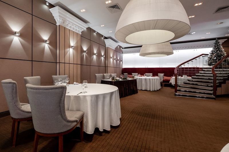 Интерьер отличается камерной обстановкой. Возможны варианты расстановки как с европейскими круглыми столами, так и с классическими прямоугольными.